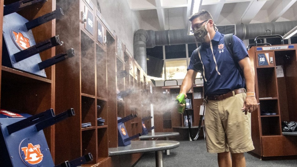 “Every student-manager and every player, whether they like to wear a glove or don’t like to wear a glove, is now wearing a glove,” Auburn equipment manager Dana Marquez said. “No human hands actually touch a ball except a quarterback. That’s different. Everybody is in a mask at practice. That’s different.”